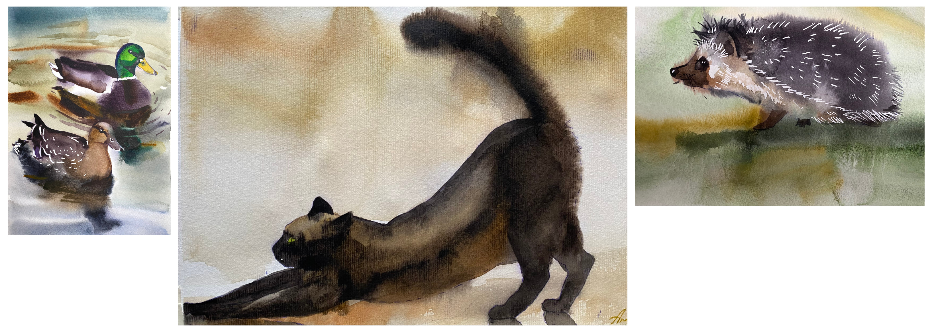 Loomade maailm akvarelltehnikas koolitaja Ganna Ryazanova tööd.