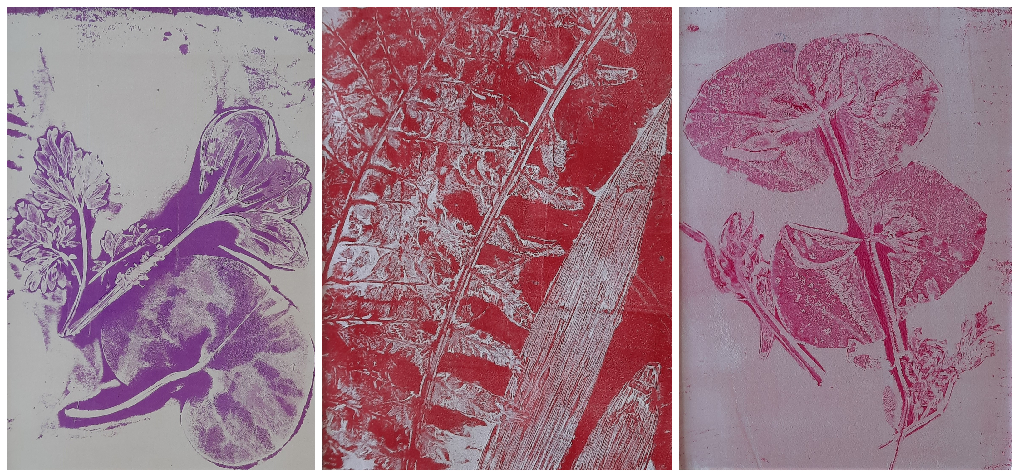 Geelprindi tehnika taimede ja trükitud materjaliga: