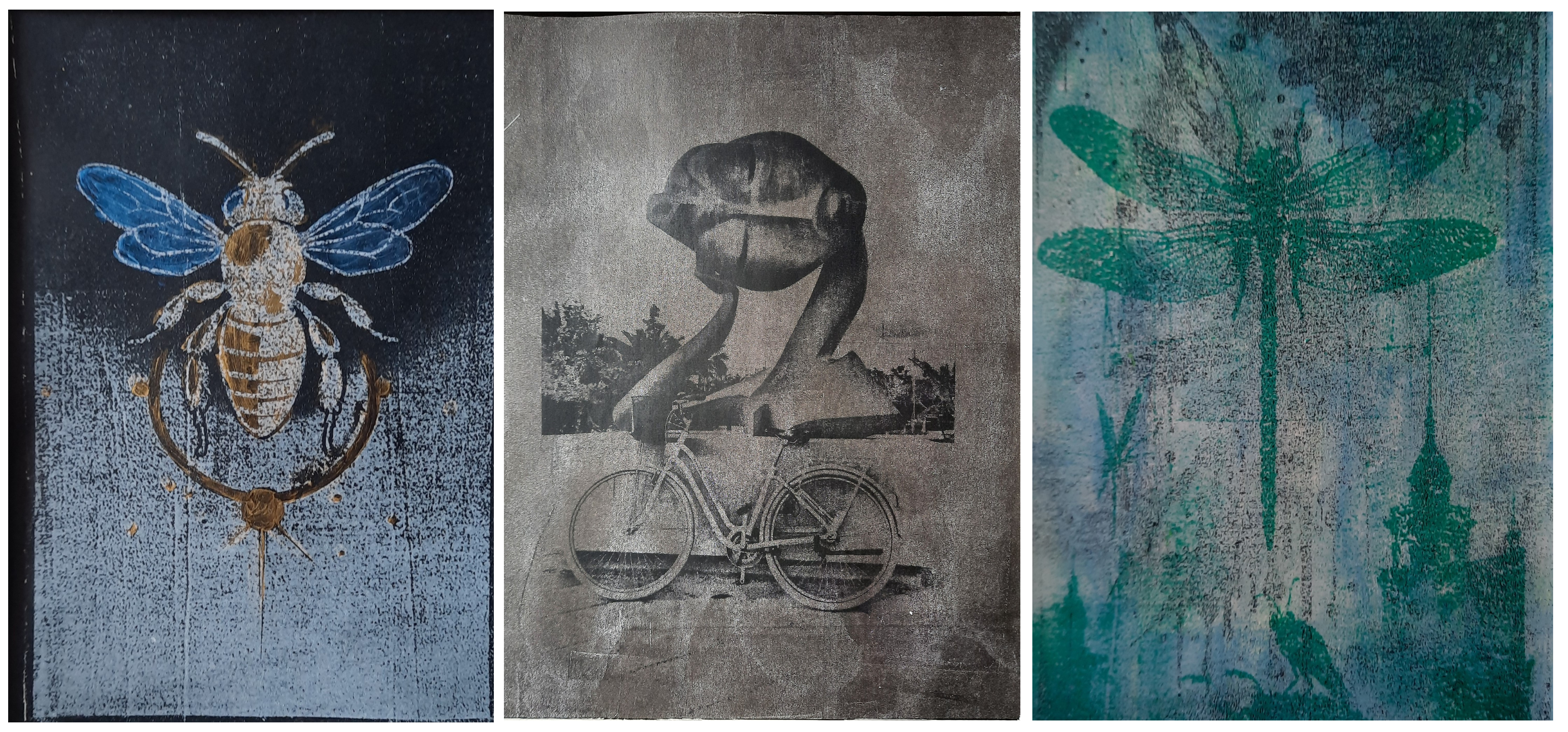 - teeme geelprinditehnikat, kasutades laserprinteriga prinditud kujutisi või ajakirjadest pärit pilte (viimased on eriti sobilikud loomevihikute ja täpivihikute pidajatele ning kollaažihuvilistele).