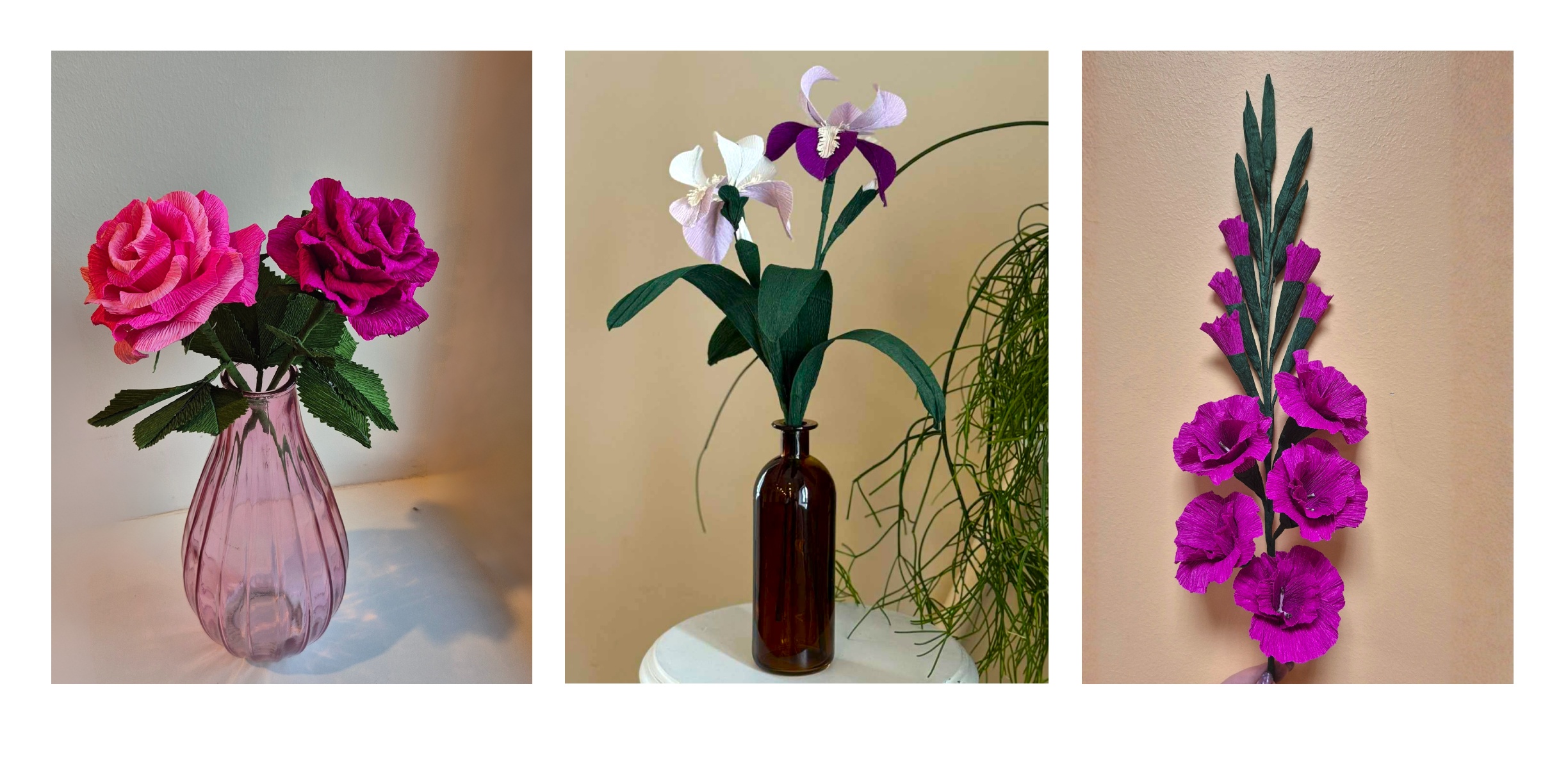 Osalejal on võimalik valida, kas valmistab gladiooli, roosi või iirise. Õpetaja juhendab osalejat algusest lõpuni alates materjalide valikust kuni lille kokkupaneku ja viimaste detailideni. Töötuba sobib nii algajatele kui ka neile, kes on juba veidi käsitööd proovinud. Varasem kogemus ei ole vajalik.