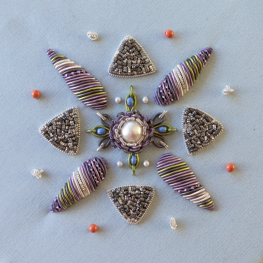 Ülejäänud materjalid (kanga, nõelad, niidid, helmed, kantillid) komplekteerib osalejatele juhendaja ning need sisalduvad koolituse hinnas. Materjalide värvivalik võib erineda fotol kujutatust.