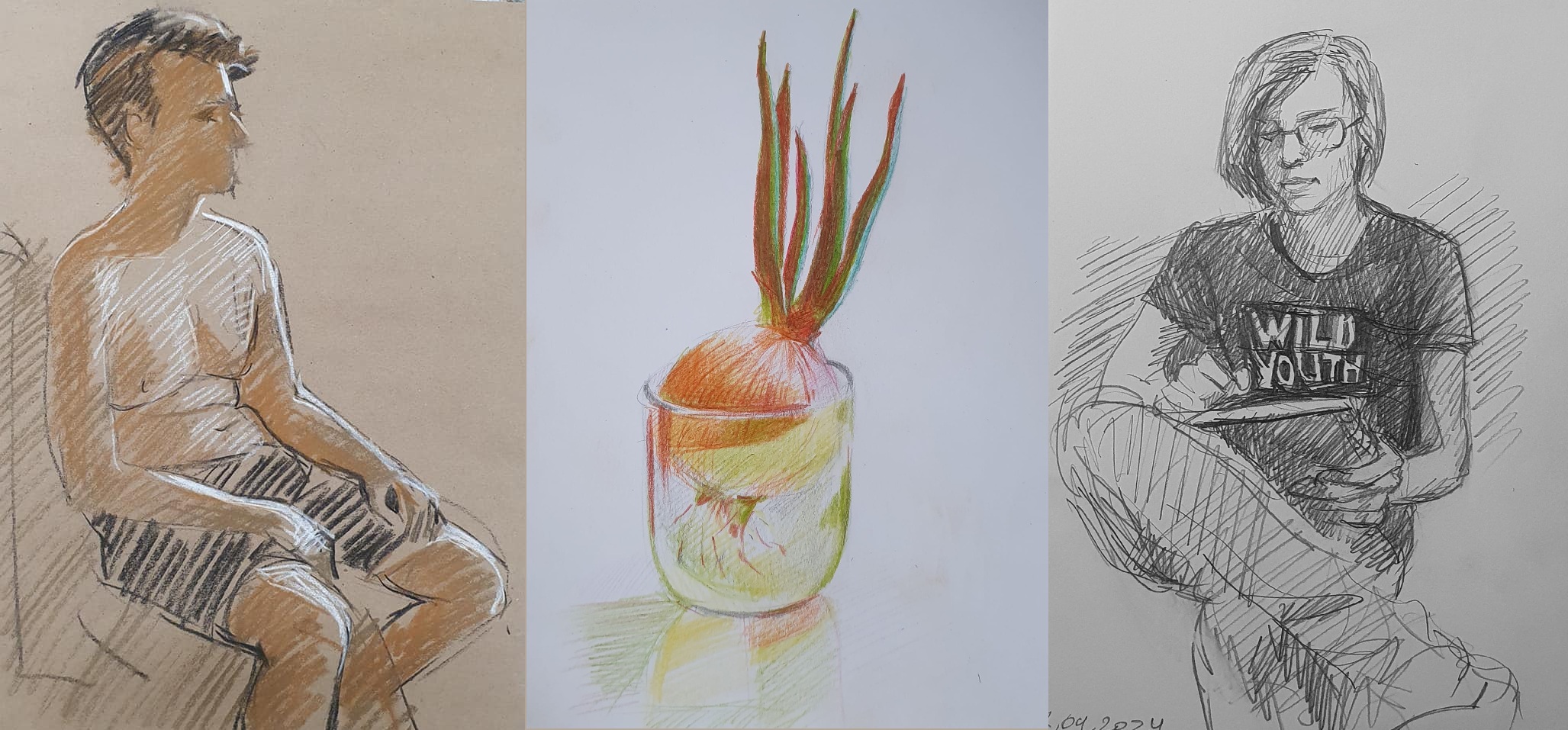 - Erinevate töövahendite kasutamine (grafiit, süsi, pastell, värvipliiats, toonitud paber)